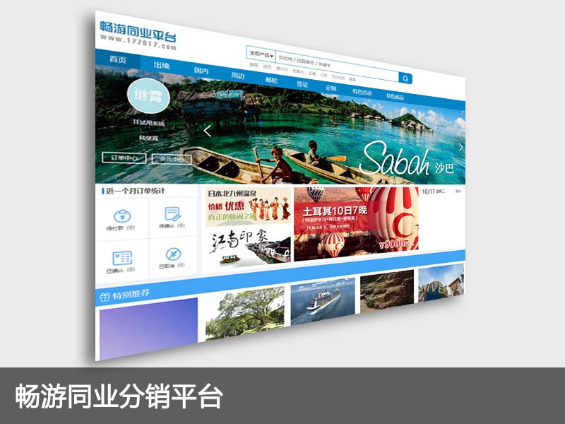 处理签证、机票、单订房、门票、车票、保险等多种单项服务,可根据产品类型设计品类及价格,类似淘宝风格销售界面简单实用