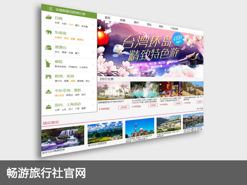 旅行社官方网站,可定制,提供旅游线路查询、预定、在线支付,通过畅游T.E.数据直连